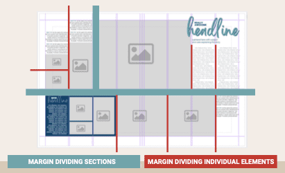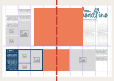 Make sure at least one element goes across the gutter so your design is one cohesive spread, not two individual pages.